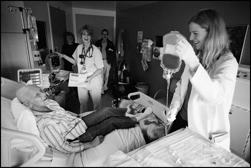"I try to be pleasant to them [nurses] even if I'm irked a bit sometimes being woken up to get your blood pressure or whatever, ya know and I think the better I can treat them, the better they'll treat me. It's been wonderful. They're good!" |